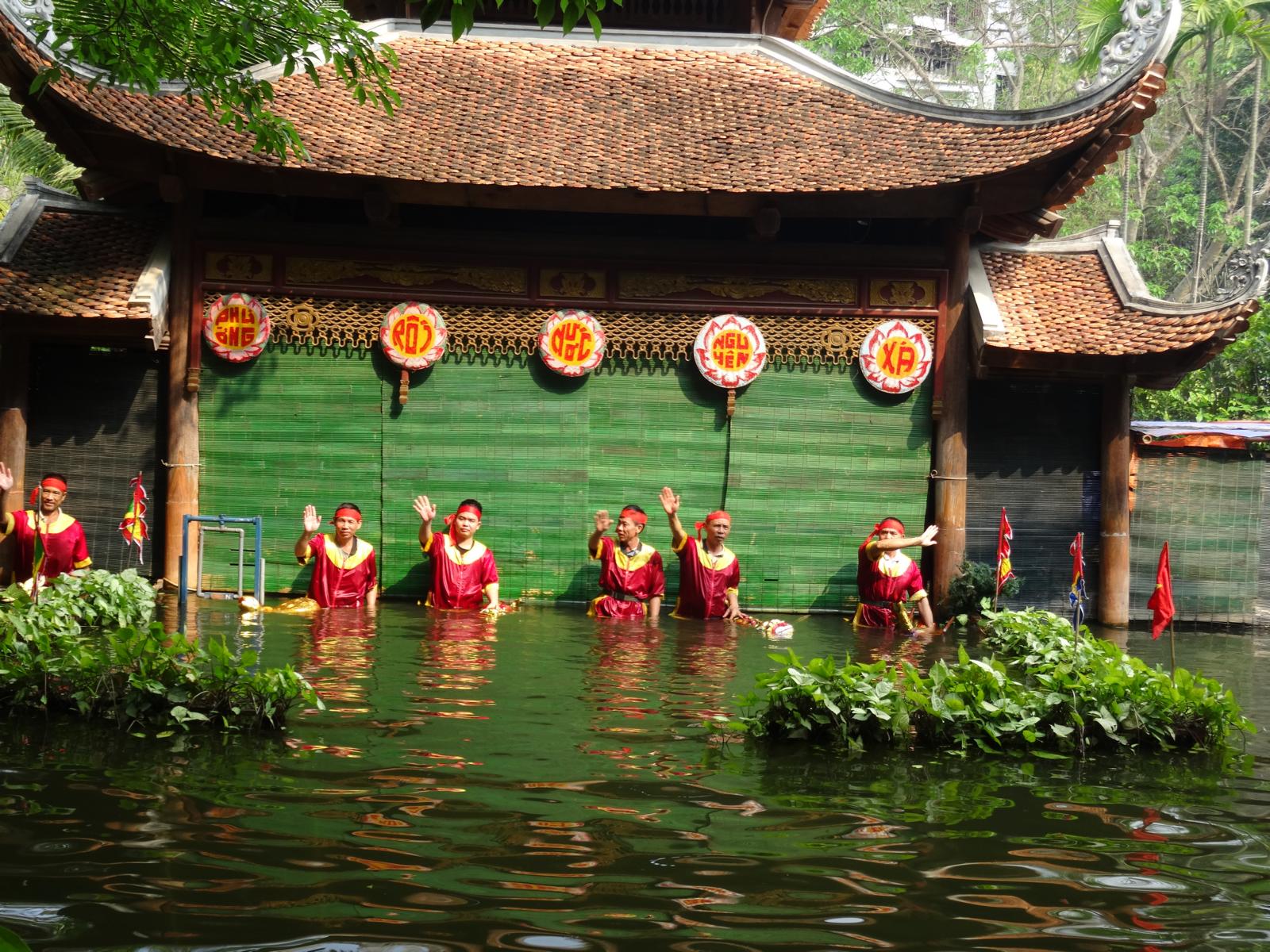 Das Wasserpuppentheater gibt es nur in Vietnam. Wahrscheinlich war es schon im 11. Jahrhundert ein fester Bestandteil im kulturellen Leben des Landes, besonders in den überfluteten Reisfeldern. Die Zuschauer werden musikalisch von einem kleinen Orchester mit Sängern begrüßt, das die ganze Aufführung begleitet. Außerdem leihen die Orchestermitglieder den Puppen ihre Stimmen. Das Orchester sitzt neben der Bühne, die aus einem Wasserbecken besteht. In dem Becken stehen hinter einem Vorhang aus geflochtenem Bambus die Akteure, die die auf 3 bis 4 m langen Stangen montierten Wasserpuppen bewegen. Dargestellt werden Szenen wie etwa Fischfang und feuerspeienden Drachen.