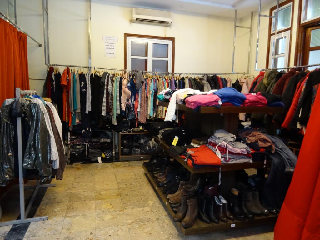 Der Klamottenkauf ist für mich garnicht so einfach. Ich trage Größe 42, das ist in Deutschland eine gängige Größe. Hier aber nicht. Viele Vietnamesinnen sind schmal und klein, also enden bei mir alle Kleider mindestens eine Handbreit oberhalb des Knies und sind zu eng. Nun könnte ich mir hier was nähen lassen, aber auch das ist nicht so ganz unproblematisch, wie mir berichtet wurde. Nicht jede Schneiderin ist wirklich versiert und dann muss man mehrfach zum Ändern gehen und eigentlich weiß ich auch garnicht, was ich haben will. Also überlasse ich diesen Teil dem Zufall und das klappt ja auch hin und wieder. Mit meiner Schuhgröße 36 bin ich hier gut dabei. Aber ich gehöre nicht zu den Frauen, die Schuhe sammeln. Muss ich noch lernen.