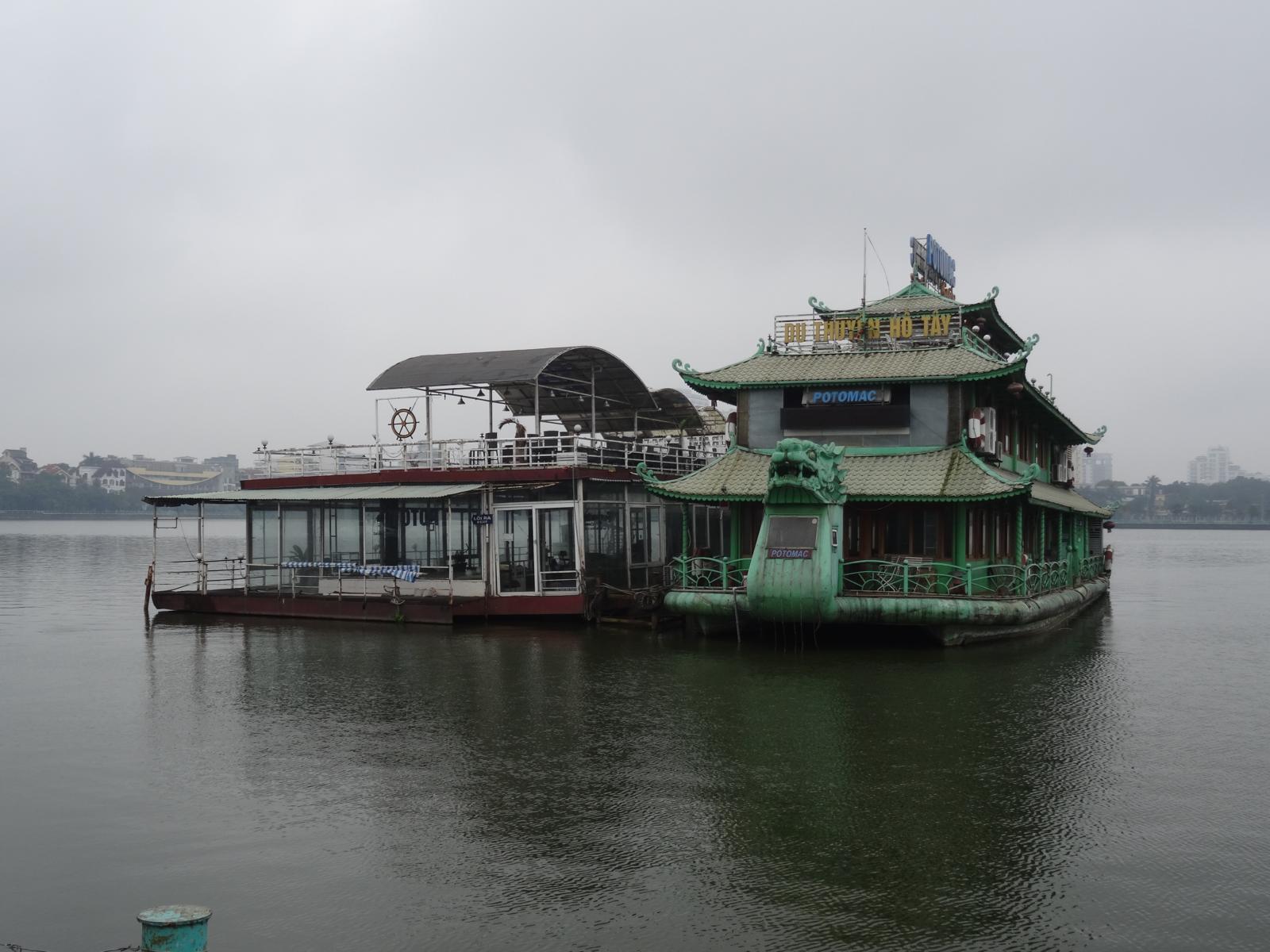 Der Stadtteil Truc Bach liegt am südöstlichen Ende des Sees. Hier ist es am schönsten. In der Nähe sind auch 2 der großen Luxushotels von Hanoi, das Sheraton und das Interconti. Früher waren hier mal ganz viele Restaurants auf Schiffen. Vor ein paar Jahren gab es eine Umweltkatastrophe und ein großes Fischsterben. Um die Touristen zu beruhigen, wurden die Schiffsrestaurants als Schuldige identifiziert und auf die andere Seite des Sees verlegt. Dort liegen die Wracks noch heute und rosten vor sich hin.