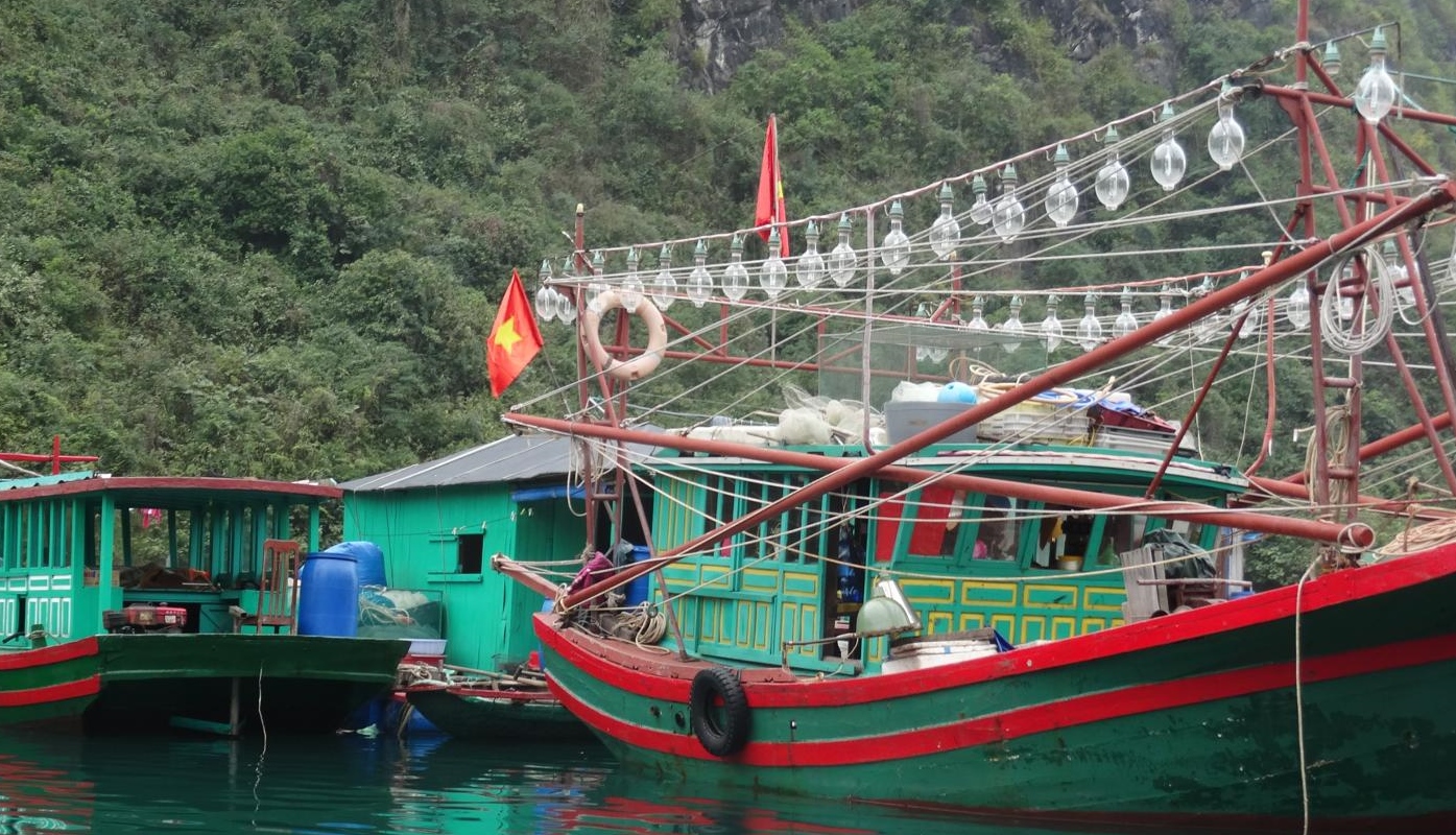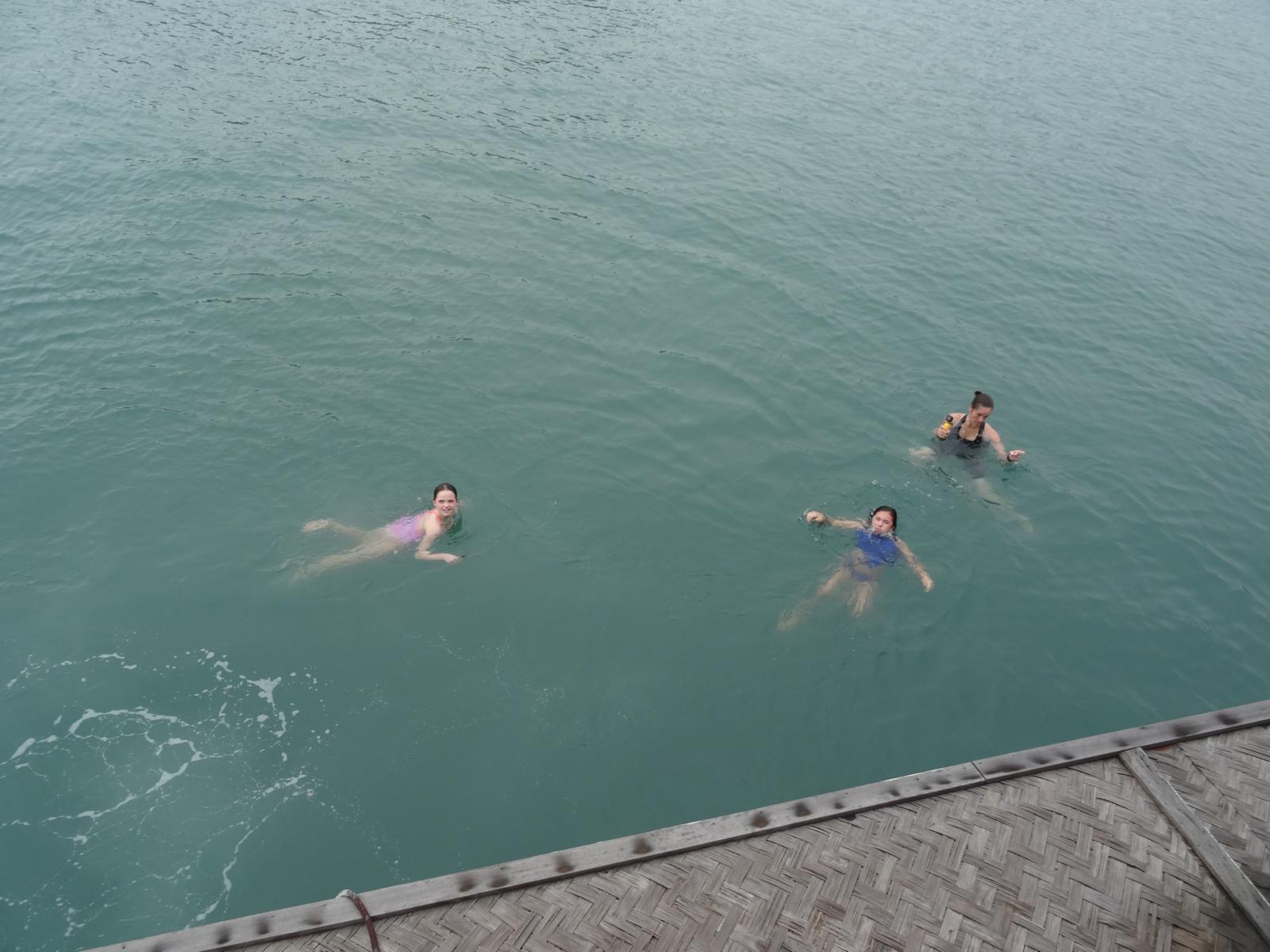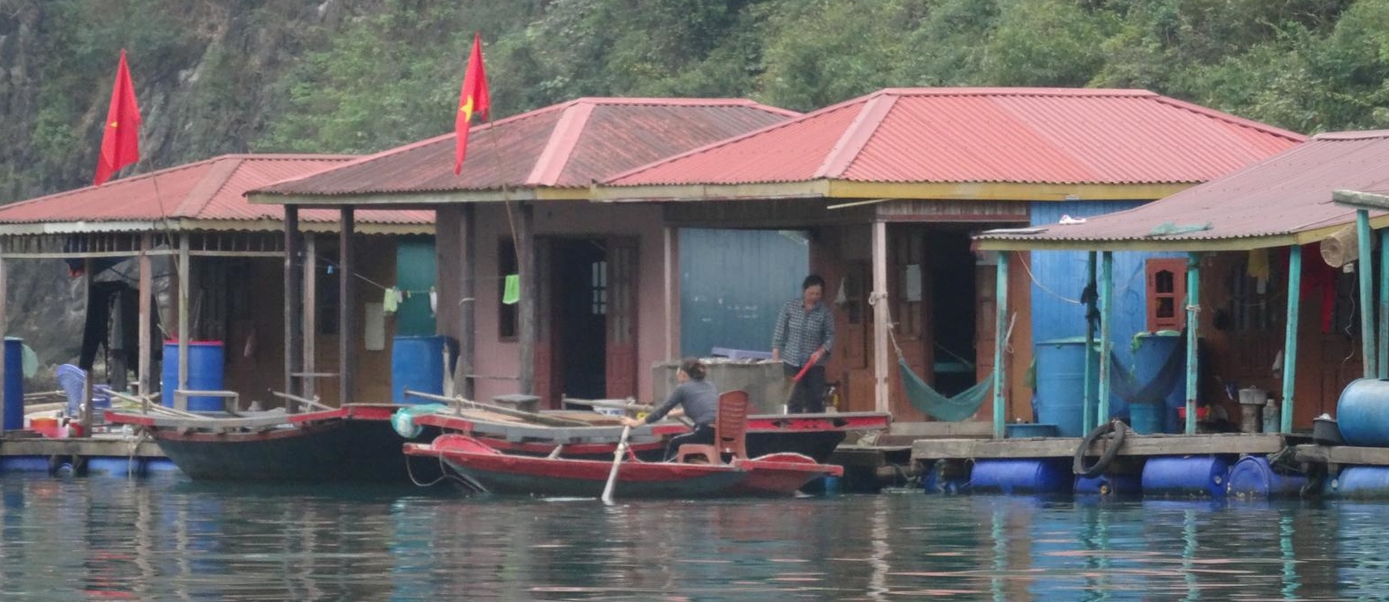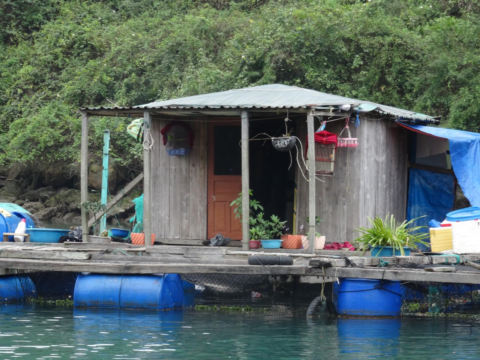 Am zweiten Tag bin ich erst Mal in das falsche Boot gestiegen und habe mit der Gruppe, die nur eine Übernachtung gebucht hat, eine Höhle besichtigt. Allerdings war das die größte Höhle, die ich je gesehen habe und von daher war es nicht schlimm, sie an Tag 3 nochmal aufzusuchen. Ich konnte das Missverständnis klären und kam sogar noch rechtzeitig zu dem Tagesboot, dass uns zu der schwimmenden Stadt brachte. Das war mein schönstes Erlebnis in der Bay. Früher lebten mehrere tausend Menschen in der Halong Bay auf Booten, inzwischen sind es nur noch 700. Die Regierung hat die Menschen umgesiedelt, da der Schulunterrricht für die Kinder nicht gewährleistet war und um die zunehmende Wasserverschmutzung einzudämmen. Es gab aktuell einige Kinder und jede Menge Hunde. Die Kinder lernen übrigens als erstes schwimmen und dann rudern. Alles andere ist zweitrangig.