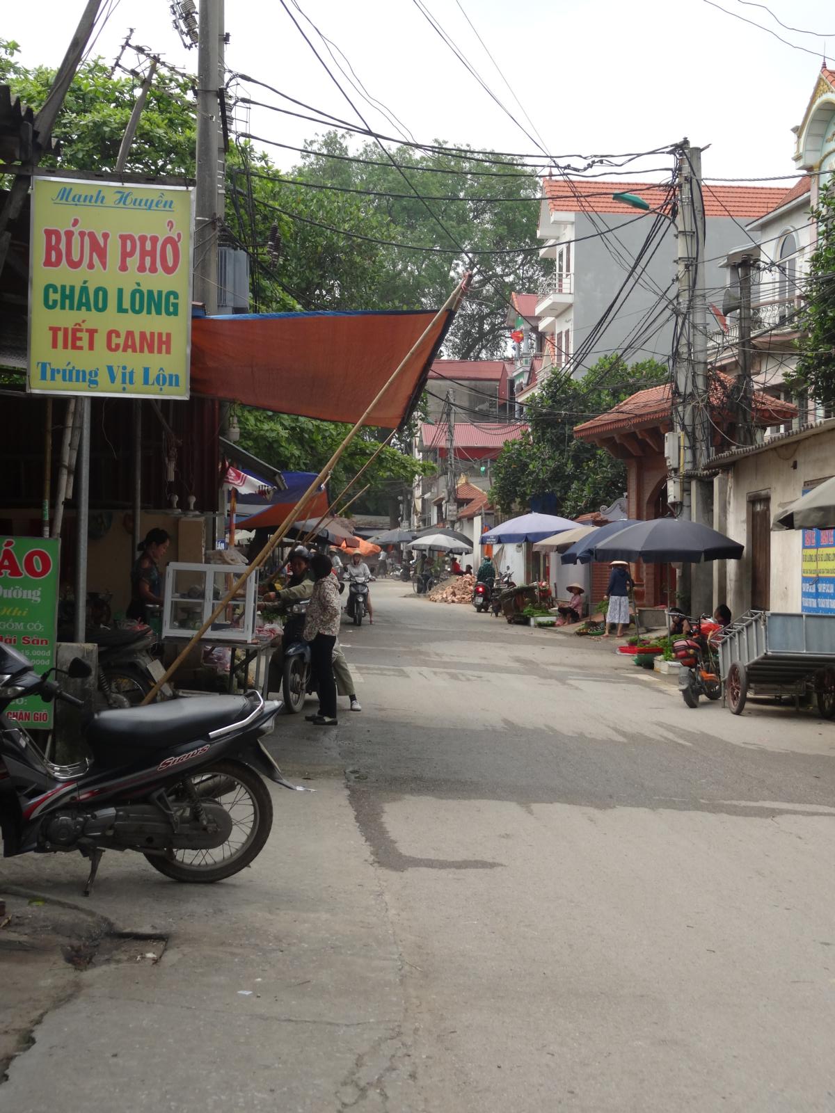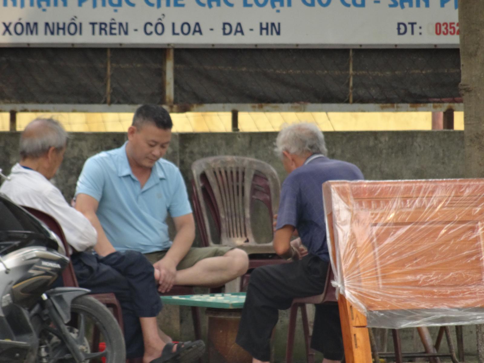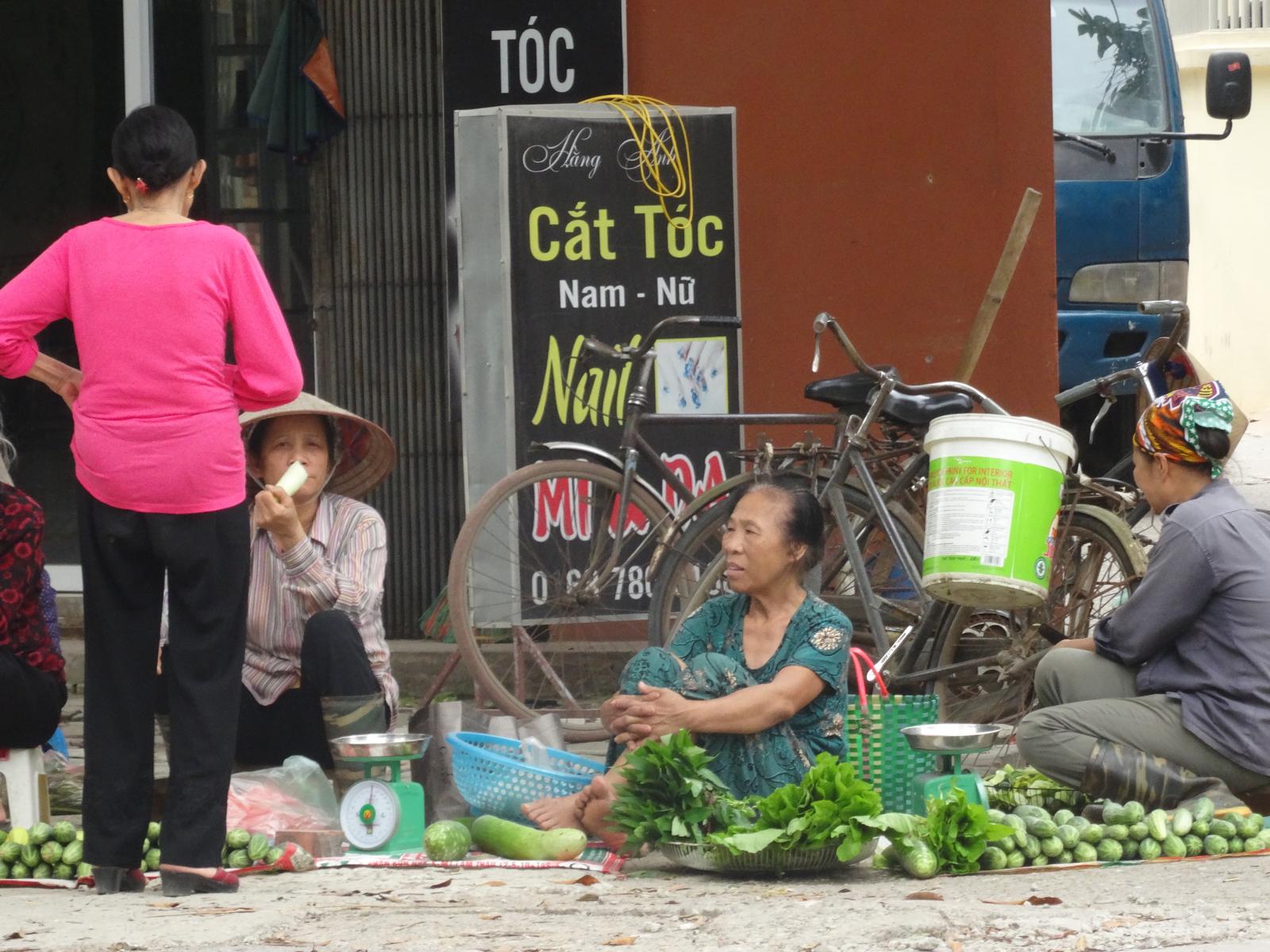 Co Loa ist inzwischen ein Stadtteil von Hanoi, liegt aber 20 km von meiner Wohnung entfernt. Es ist mehr Dorf als Städtchen und ich habe mich dort etwas seltsam gefühlt. Einsame Gassen, kaum Autos, wenig Mopeds, viele Felder und alte Frauen mit schwarzen oder wenigen Zähnen, die mich neugierig betrachteten. Die wollte ich aber nicht fotografieren. Vielleicht braucht man manchmal doch einen Fremdenführer. Ich bin also kreuz und quer durch die Gassen des Dorfs gelaufen, wurde von Schulkindern angehalten und fühlte mich etwas orientierungslos. Manchmal saßen Frauen an ihren Verkaufsständen und Männer spielten etwas, das aussah wie Mühle. Der Markt war schon fast abgeräumt, als ich ihn mehr zufällig fand.