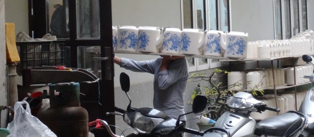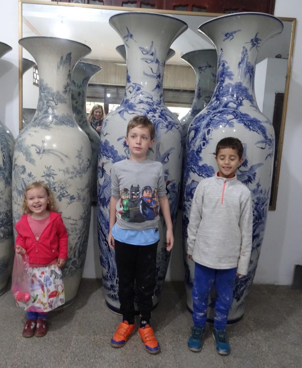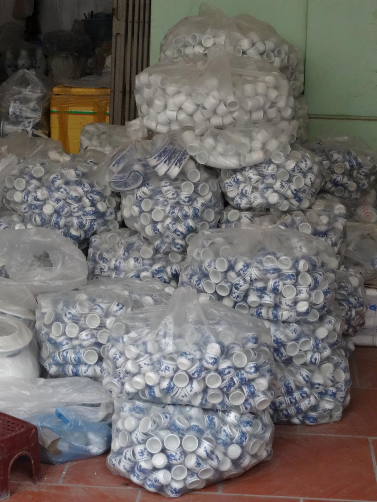 Wir waren zwei Mal in Bat Trang, einem Stadtteil, der auch als Töpferdorf bezeichnet wird. Seit dem 14. Jahrhundert wird dort Keramik produziert. Es gibt unzählige Geschäfte, in denen man getöpfertes Geschirr kaufen kann, aber auch Vasen für die Pagoden. Auch wenn das auf meinen Fotos nicht so rauskommt, aber da sind sehr geschmackvolle und schöne Stücke dabei.